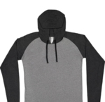 LAT Men's Long Sleeve Raglan Hooded Fine Jersey Tee. The comfort of a tee with the added benefit of a hoodie! These contrast color raglan sleeves and vintage colors give you the stylish comfort you crave! Fabrication: 4.5 oz. 60% combed ringspun cotton/40% polyester fine jersey. Features: Contrast three-piece hood construction Contrast cotton-hand flat braided drawcord, tacked Double needle contrast raglan long sleeves Double needle drop tail bottom hem with side vent construction Side seam construction EasyTear label. Care: Machine Washable/ tumble dry low. Fit: Adult Unisex - True to Size. Note: Color descriptions indicate Body/Sleeves and Hood/Drawcord colors, e.g. Granite Heather/Vintage Smoke/Black indicates Granite Heather shirt with Vintage Smoke sleeves and hood and Black drawcord. Ships From Ball Ground, GA.