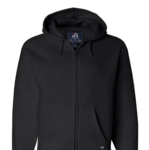 J-America Adult Premium Full Zip Fleece Hoody. 10.0 oz. 80% Ringspun cotton, 20% Polyester fleece fabric. Concealed front zipper placket, Spandex blend rib waist and cuffs. Coverstitched throughout